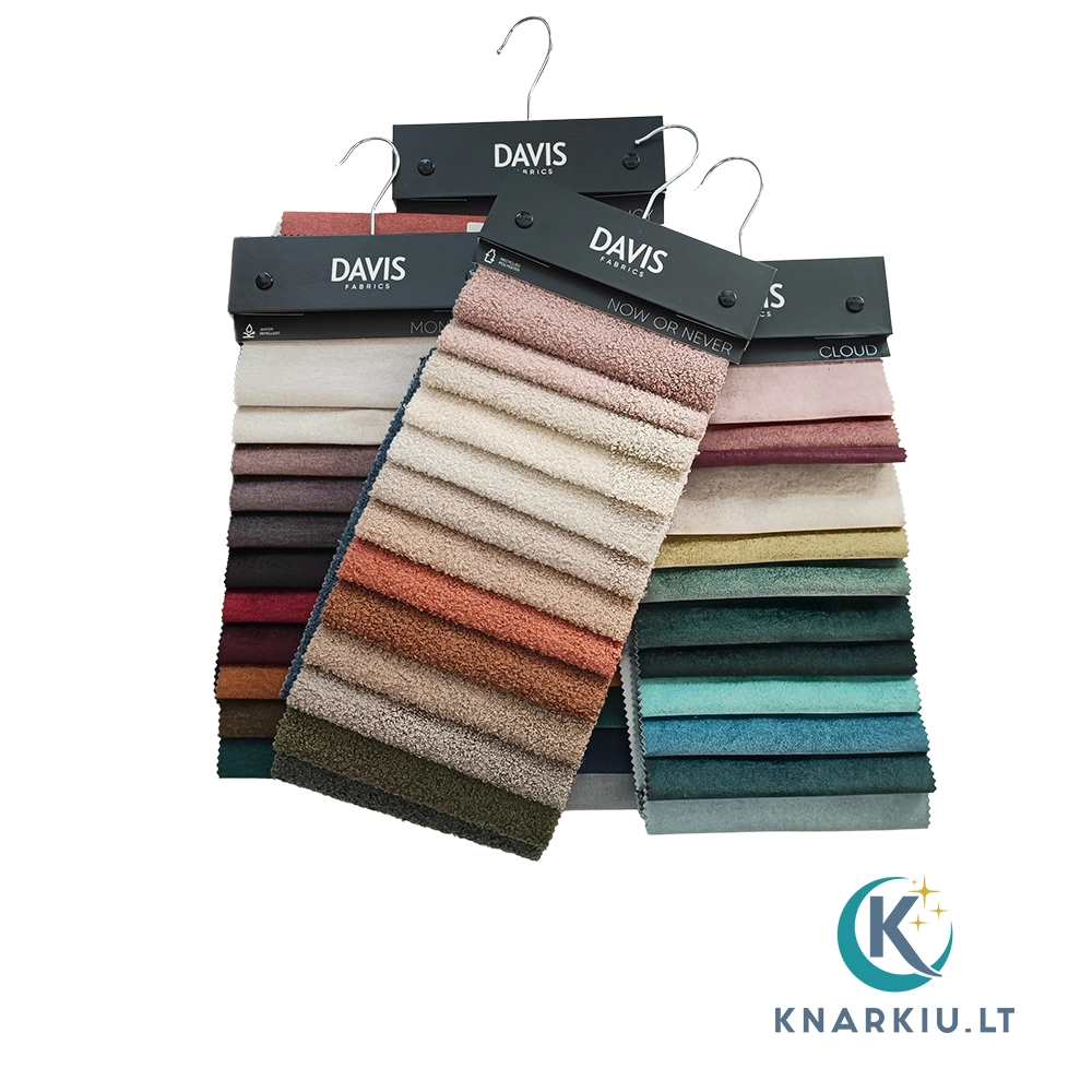 Rinkitės tobulą audinį savo baldams dar lengviau! Mūsų siūlomi Davis gamintojo audinių pavyzdžiai iš Monolith, Cloud, Fancy ir Now or Never kolekcijų leis gyvai įvertinti spalvas, tekstūrą ir audinio savybes prieš priimant galutinį sprendimą.