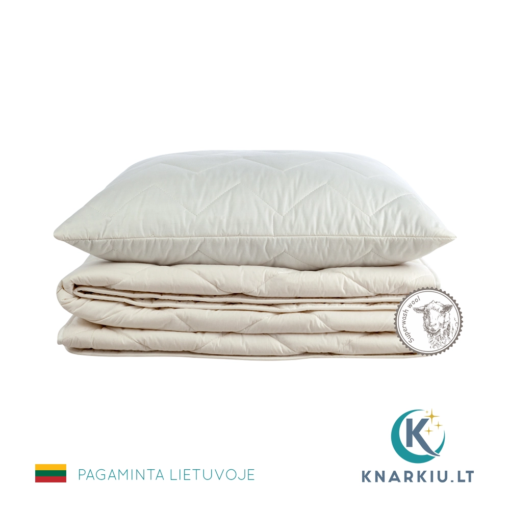 • Sveika miego aplinka – 85 % Superwash avių vilnos ir 15 % poliesterio užpildas palaiko sausą ir gaivų klimatą.