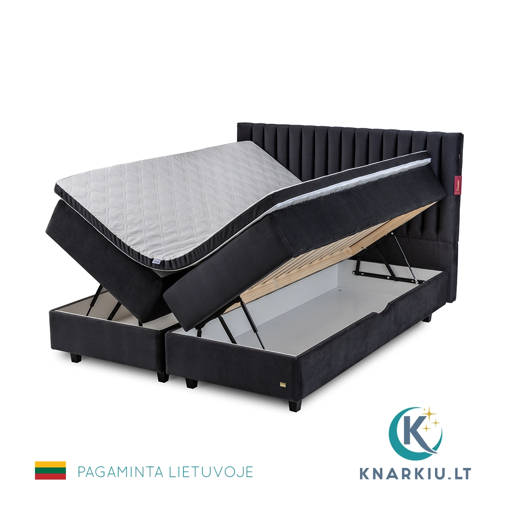 🔹 Patalynės dėžė: Dvigubos sienelės konstrukcija, su tyliais dujiniais amortizatoriais.
