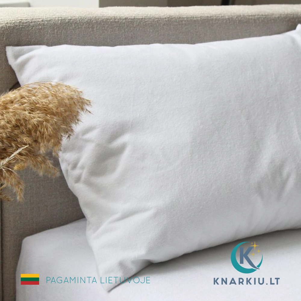 Šis apsauginis pagalvės užvalkalas yra pagamintas iš minkšto, orui pralaidaus frotinio audinio (80% medvilnė, 20% poliesteris) su poliuretano laminatu apačioje, kuris efektyviai saugo pagalvę nuo skysčių, prakaito, dulkių ir kitų nešvarumų. Tai puikus pasirinkimas tiems, kurie vertina švarą ir siekia pratęsti pagalvės tarnavimo laiką.