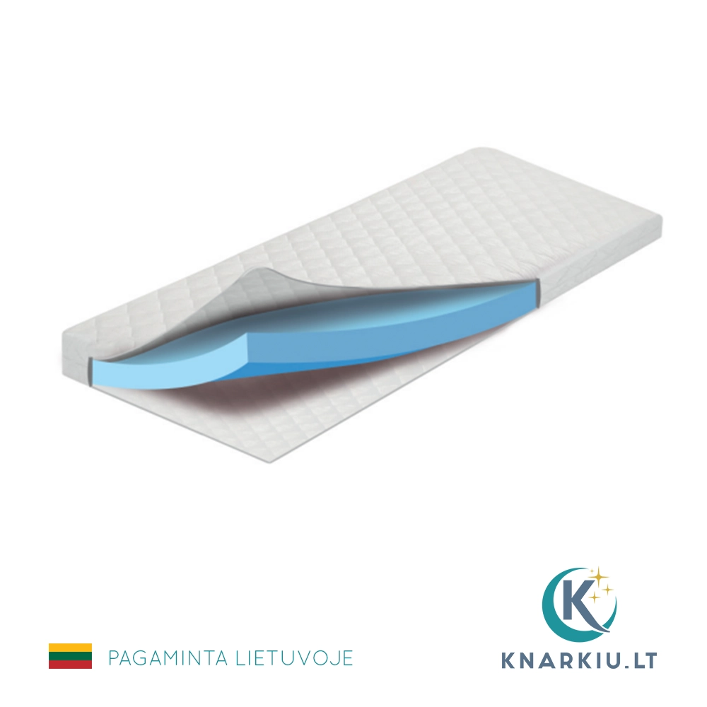 • Elastingas putų poliuretanas: Čiužinio branduolys pagamintas iš elastingo putų poliuretano, kuris suteikia stabilų pagrindą ir prisitaiko prie kūno formų.
