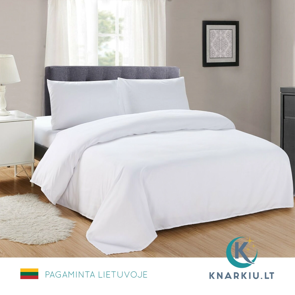 Komplektas pasiūtas iš aukštos kokybės audinio, kuriame puikiai dera medvilnė (50%) ir poliesteris (50%), užtikrinantis lengvą priežiūrą, tvirtumą bei minkštumą. Audinys mažai glamžosi, yra lengvai prižiūrimas ir greitai džiūstantis, todėl tai praktiškas pasirinkimas, vertinantiems patogumą ir stilių.