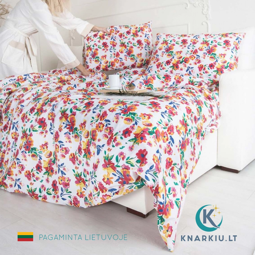 Suteikite savo miegamajam naujų spalvų ir žavesio su šiuo gėlėtu patalynės užvalkalų komplektu. Subtilus, ryškus ir natūralus gėlių raštas pagyvins kambario erdvę, suteiks jaukumo ir romantiškos elegancijos jausmą.