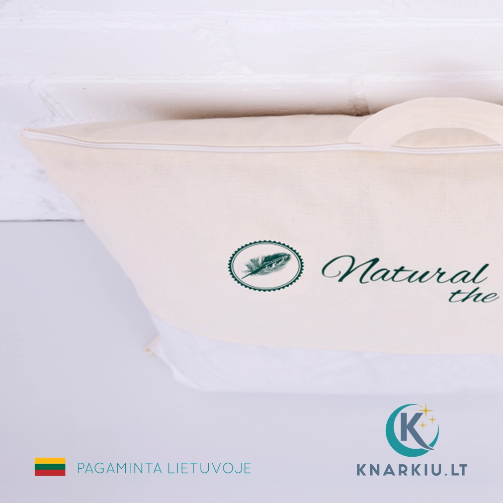 Ši pagalvė atitinka Oeko-Tex® Standart 100 kokybės reikalavimus, garantuojančius, kad gaminyje nėra kenksmingų medžiagų. Natural linijos produktai gaminami be optinių baliklių, naudojant natūralias žaliavas, o kiekviena pagalvė dekoruota Lietuvos trispalve ir supakuota į daugkartinį medvilninį lagaminėlį.
